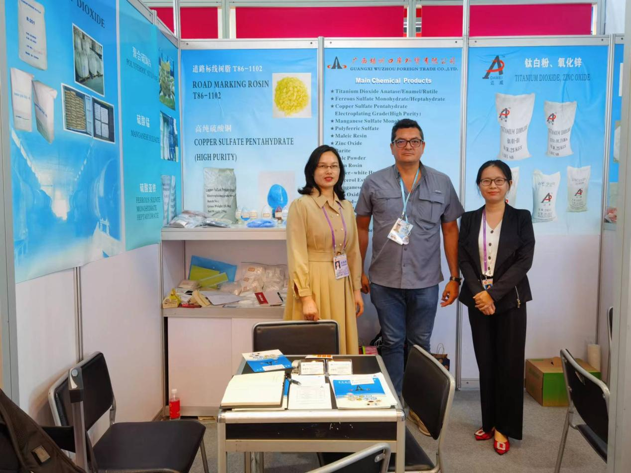 梧州口岸公司共參加三期廣交會(huì)線下展,每期參展產(chǎn)品均為公司出口業(yè)務(wù)的拳頭產(chǎn)品,包括鈦白粉(二氧化鈦)、高純度硫酸銅、氧化鋅、松香、八角及木衣架等化工品、土畜產(chǎn)品、保健品和輕工工藝品。各業(yè)務(wù)部門搶抓機(jī)遇,精心準(zhǔn)備產(chǎn)品樣板,認(rèn)真布展,并通過視頻、圖片、文字及樣品展示等方式,全方位推介參展產(chǎn)品,備受境內(nèi)外客商青睞。所在展位的客商訪問量和初步意向簽約量均頻頻告捷。參展首日,展位訪問量平均每小時(shí)70余人次,有初步采購(gòu)意向的占比達(dá)10%。